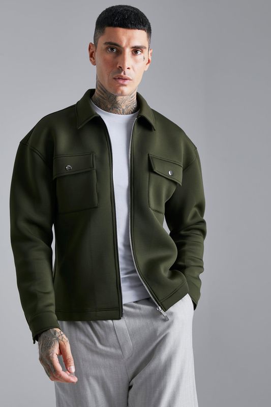 Boxy Neoprene Zip Shirt Jacket