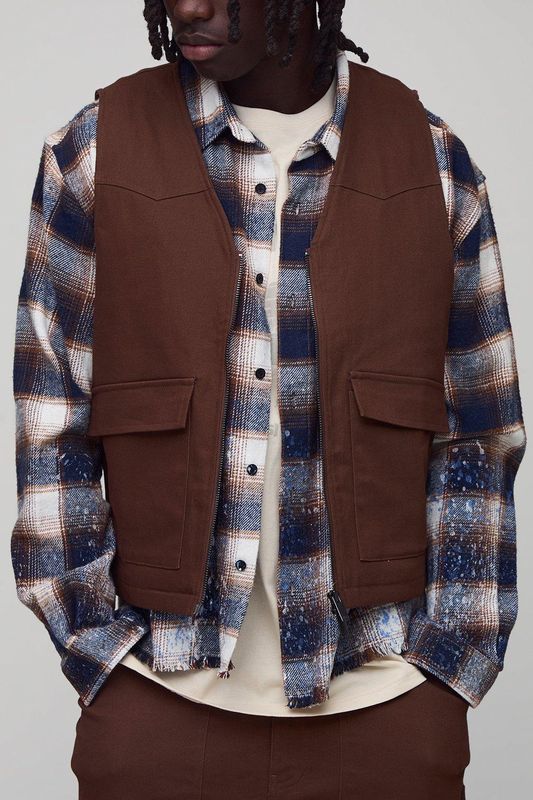 Boxy Overdyed Cargo Quilted Denim Utility Vest
