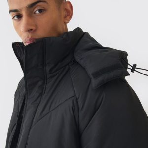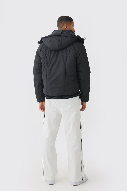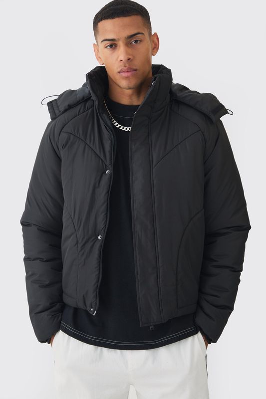 Boxy Quilted Hooded Puffer Coat In Black