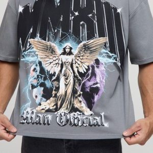 Charcoal Oversized Boxy Heavyweight Angel Printed T-Shirt
