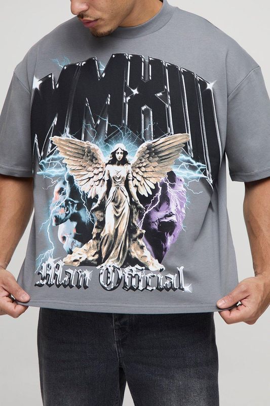 Charcoal Oversized Boxy Heavyweight Angel Printed T-Shirt