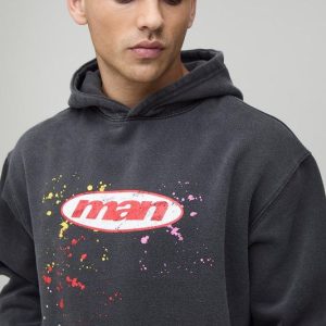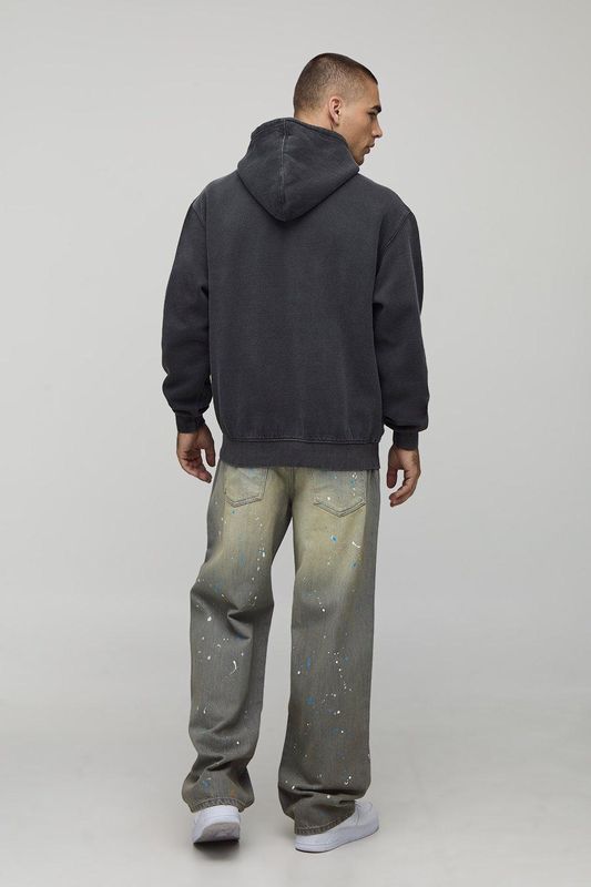 Charcoal Oversized Paint Splatter Washed Hoodie