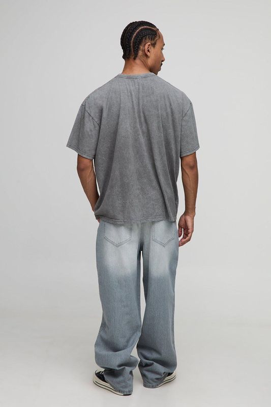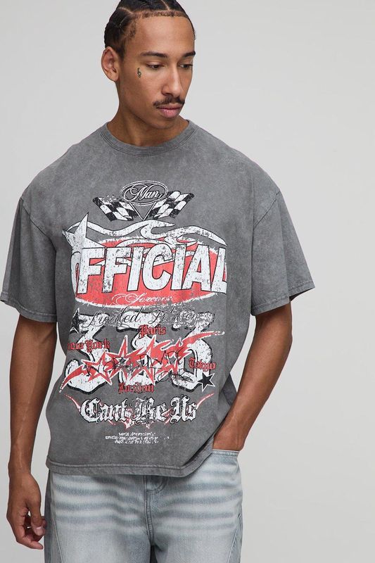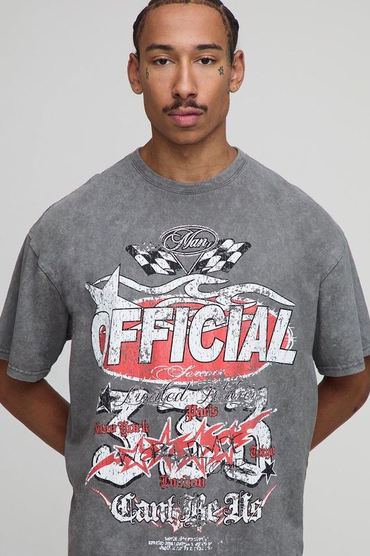 Charcoal Oversized Washed Official Moto Printed T-Shirt