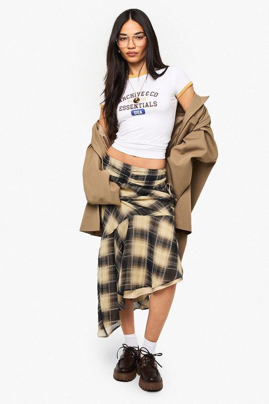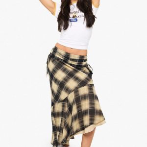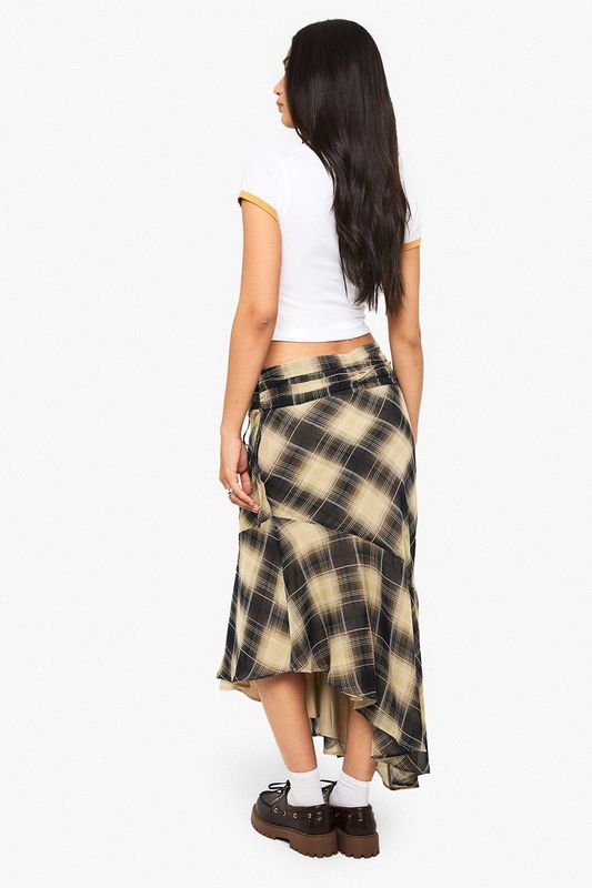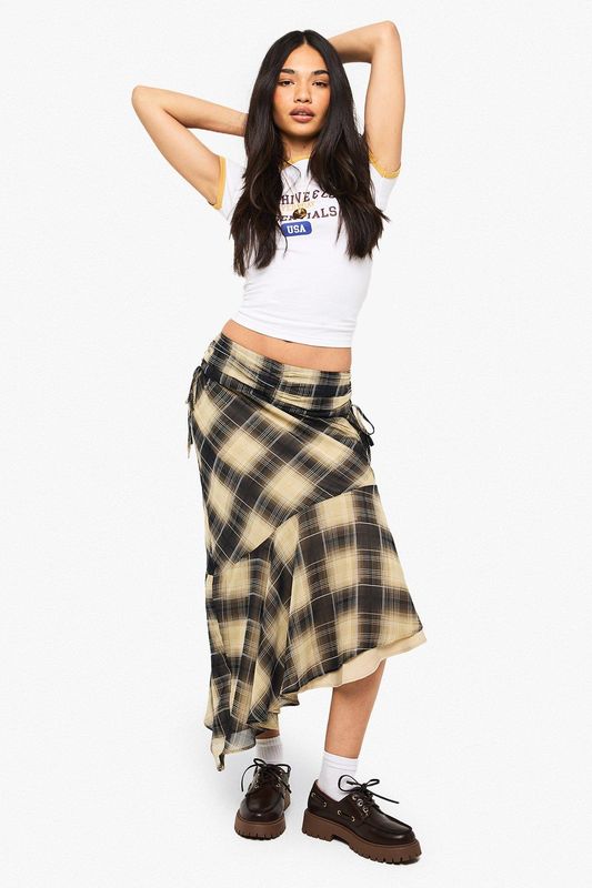 Check Print Ruched Midi Skirt