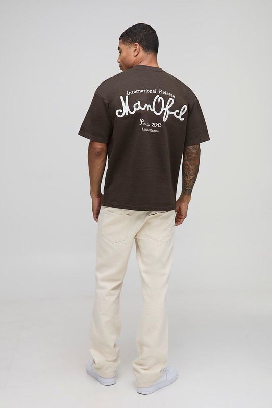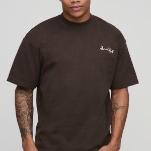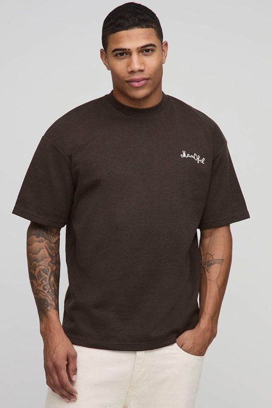 Chocolate Oversized Extended Neck Super Heavyweight Embroidered T-shirt