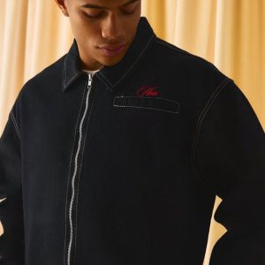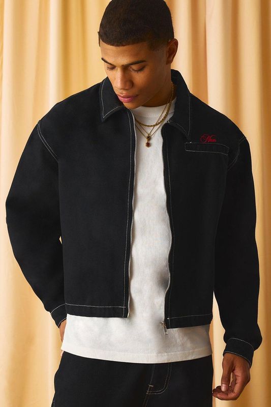 Contrast Stitch Embroidered Boxy Harrington