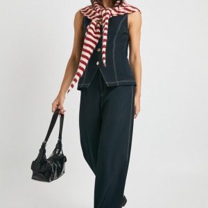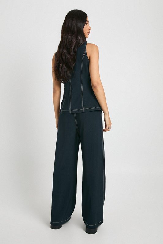 Contrast Stitch Gold Button Straight Leg Trouser