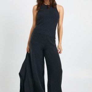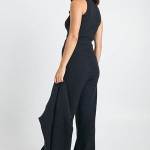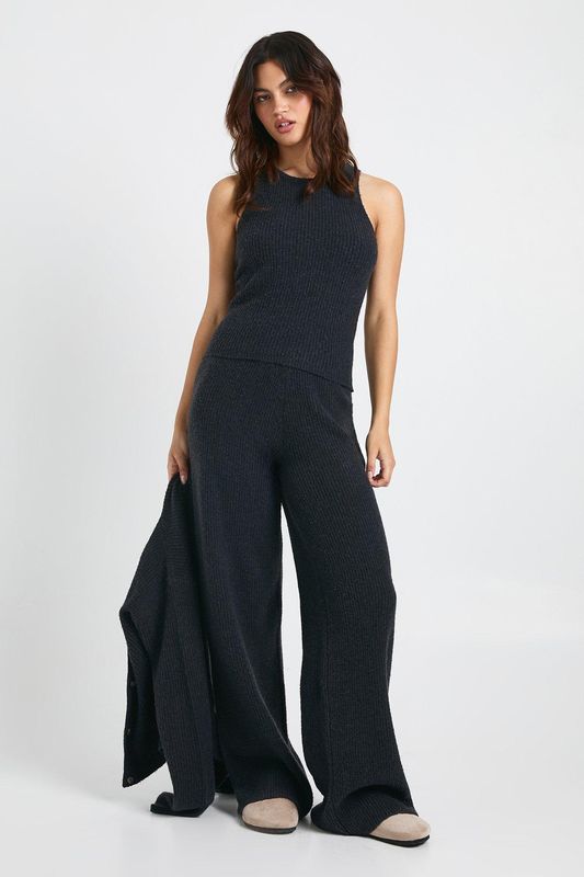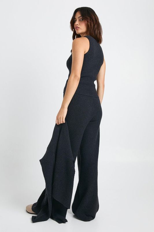 Cosy Knit Crew Neck Cardigan, Knitted Vest and Wide Leg Trouser 3 Piece Co-Ord