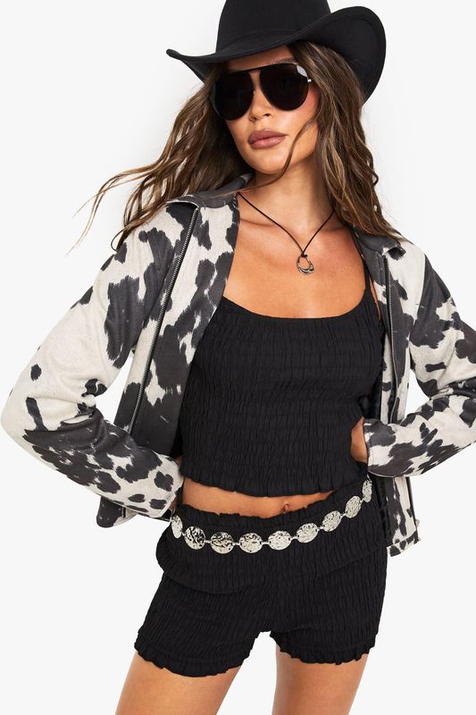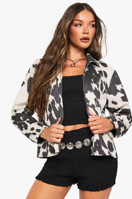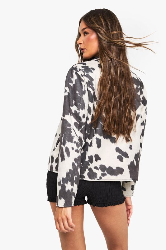 Cow Print Faux Suede Jacket