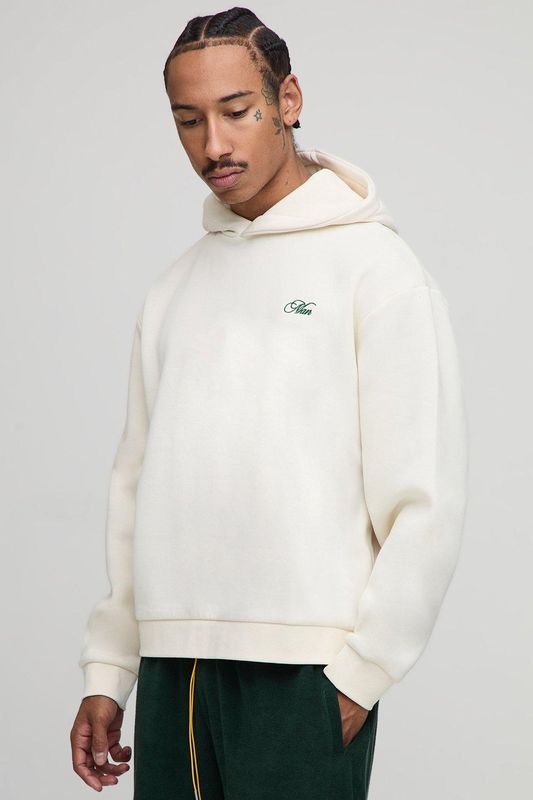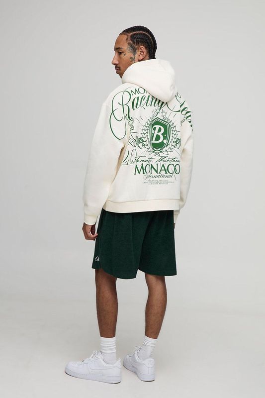 Ecru Oversized Boxy Over Seam Racing Team Printed Hoodie