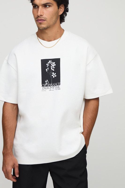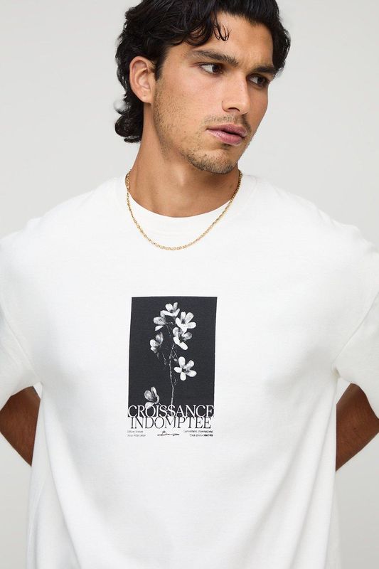Ecru Oversized Super Heavyweight Floral Graphic T-Shirt