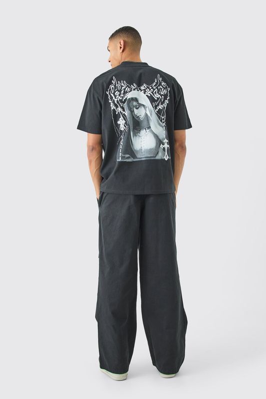 Elasticated Waist Contrast Drawcord Baggy Pants