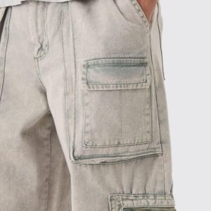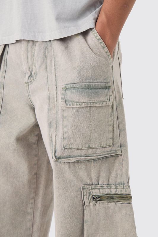 Elasticated Waist Washed Extreme Baggy Cargo Pants