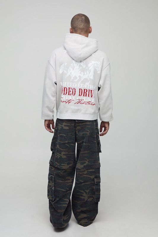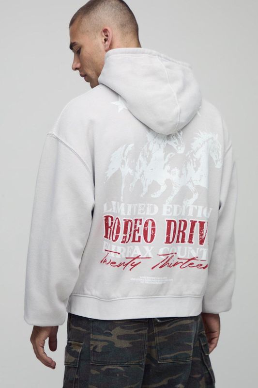 Grey Oversized Boxy Western Washed Graphic Hoodie