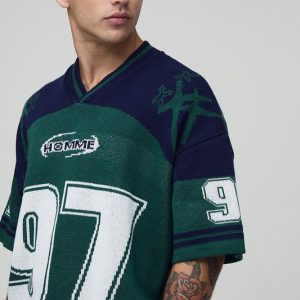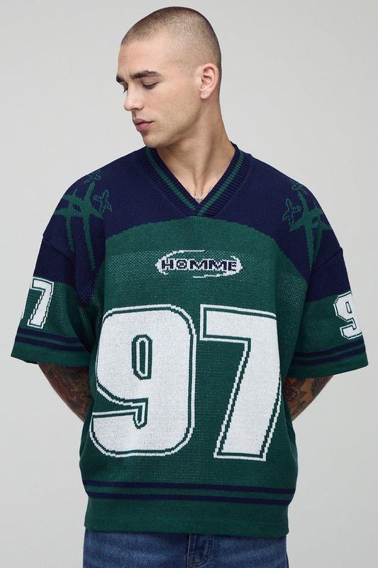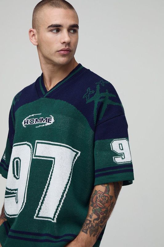 Homme Jacquard Knitted Short Sleeve Hockey Sports Top