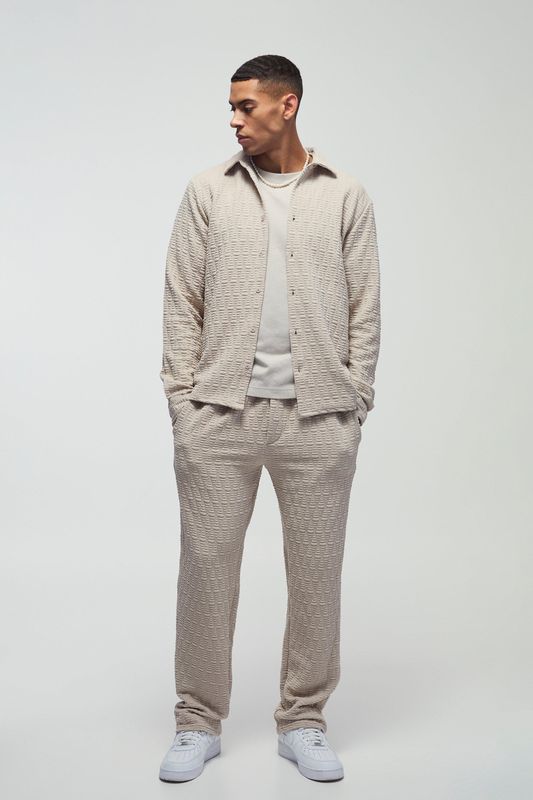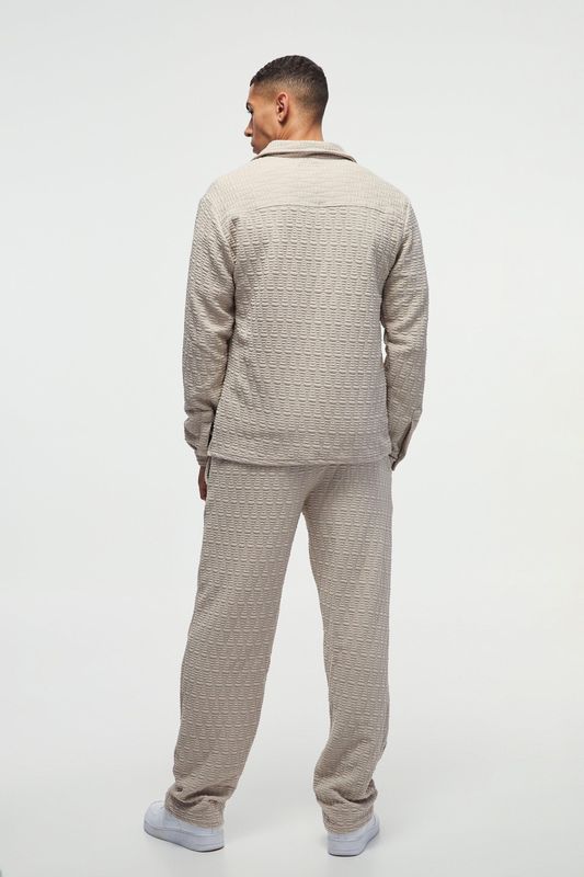 Long Sleeve Textured Stretch Shirt And Pants Set