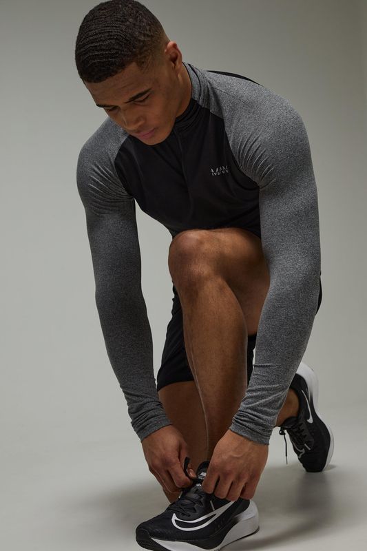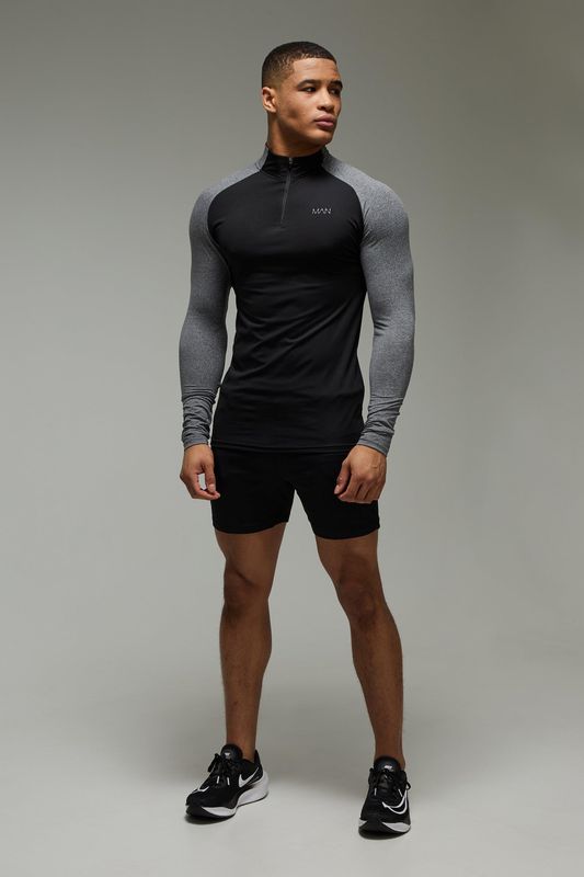 Man Active Performance Marl Muscle Fit 1/4 Zip & Short Set