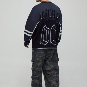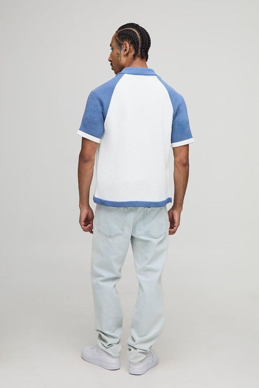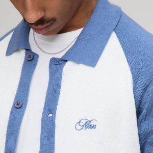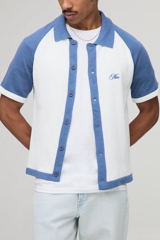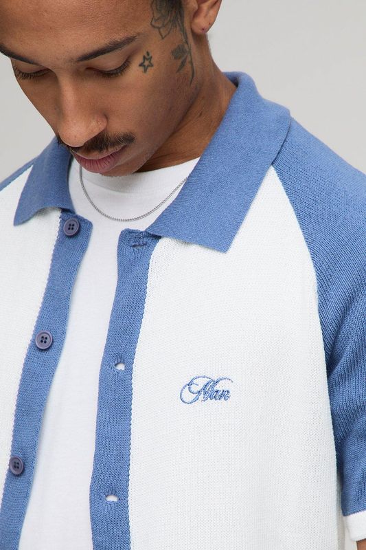 Man Embroidered Boxy Fit Raglan Colour Block Knitted Shirt