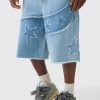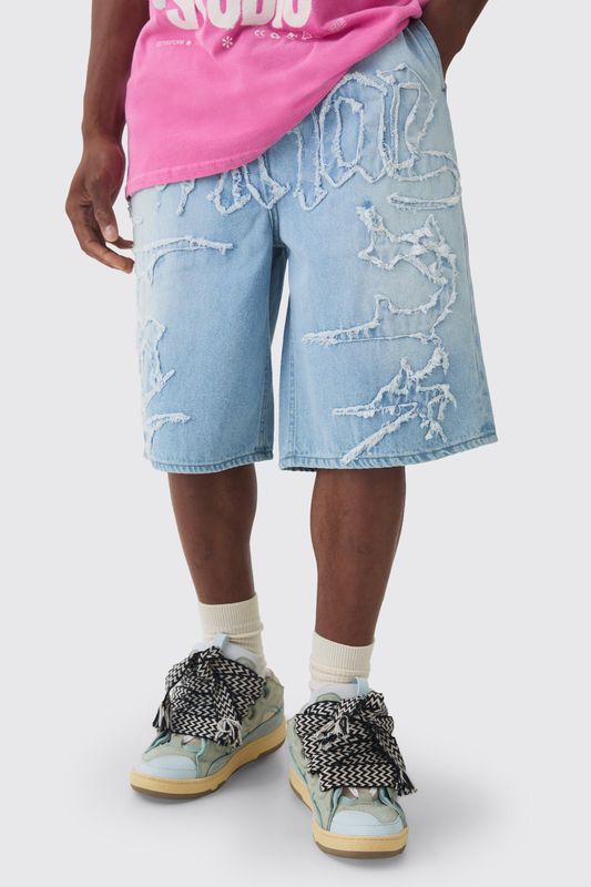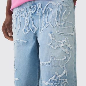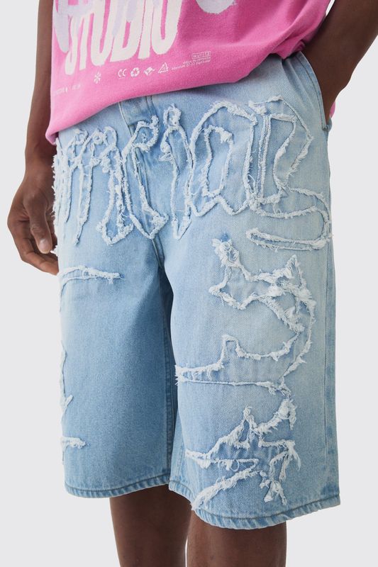 Official Self Fabric Applique Denim Jorts In Ice Blue