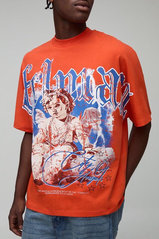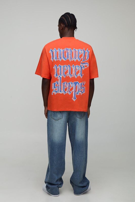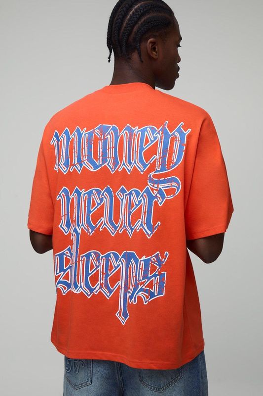 Orange Oversized Heavyweight Money Never Sleeps T-Shirt