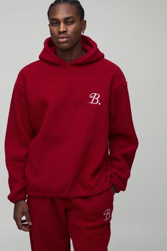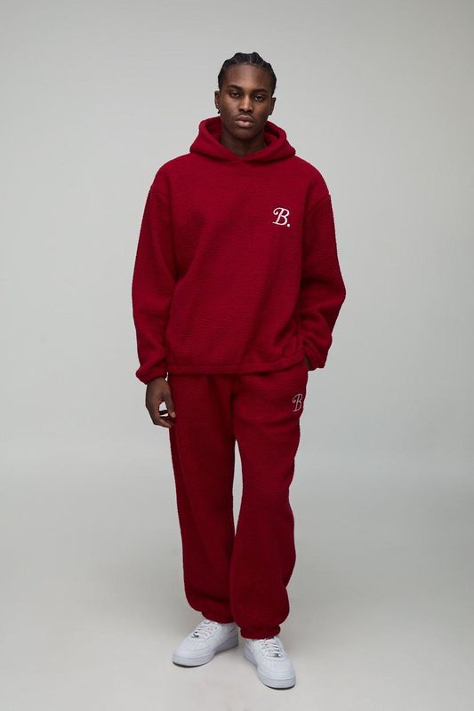 Oversized Borg B Scroll Embroidered Hoodie & Cuffed Jogger Tracksuit