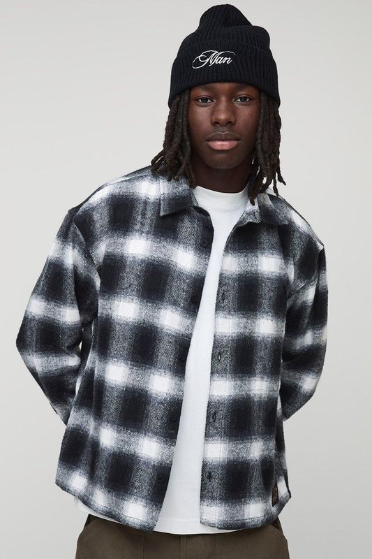 Oversized Boxy Brushed Check Badge Carpenter Overshirt