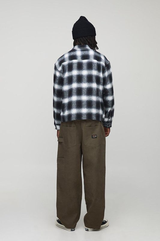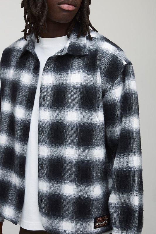 Oversized Boxy Brushed Check Badge Carpenter Overshirt