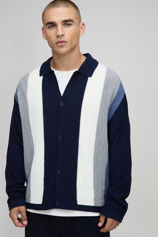 Oversized Boxy Colour Block Knitted Long Sleeve Shirt