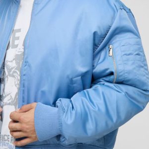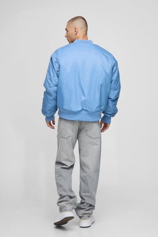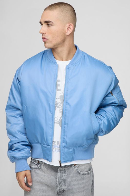 Oversized Boxy Curved Hem Nylon Bomber Jacket