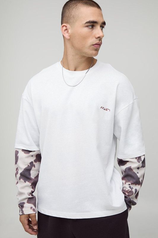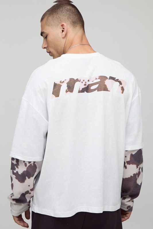 Oversized Boxy Faux Layer Cow Print T-Shirt