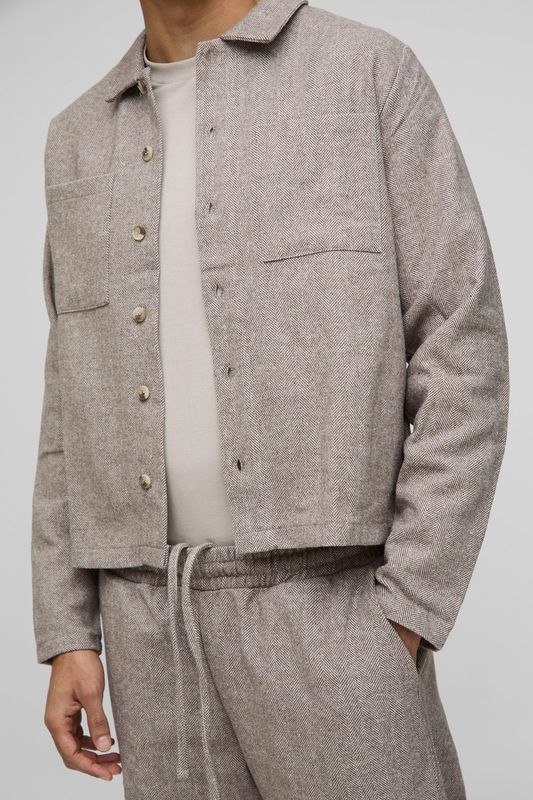 Oversized Boxy Fit Herringbone Cargo Pocket Harrington