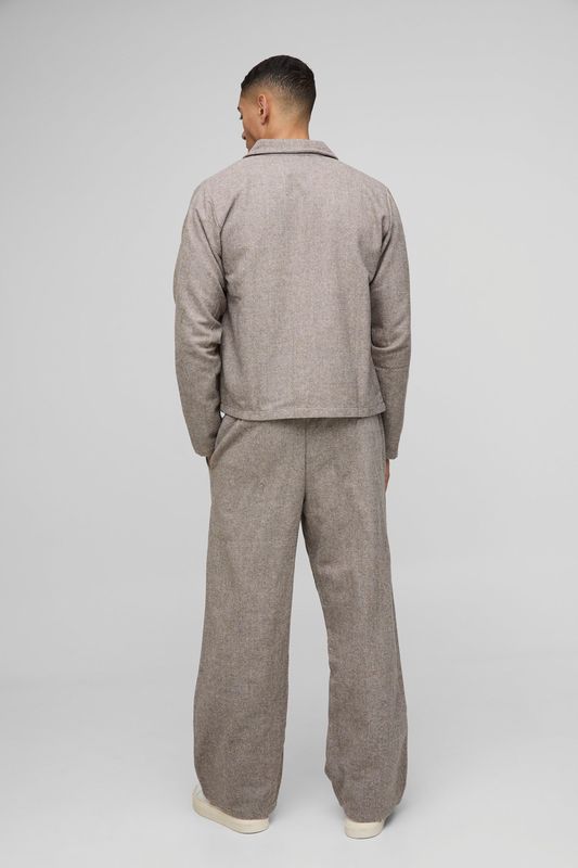 Oversized Boxy Fit Herringbone Cargo Pocket Harrington