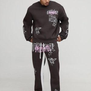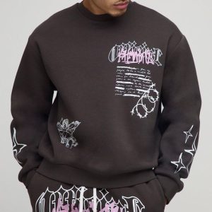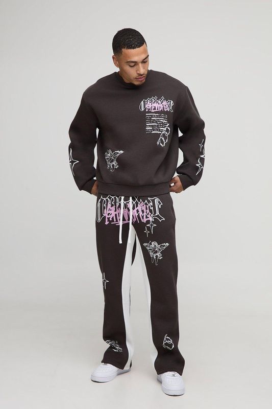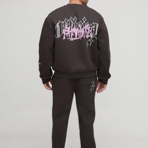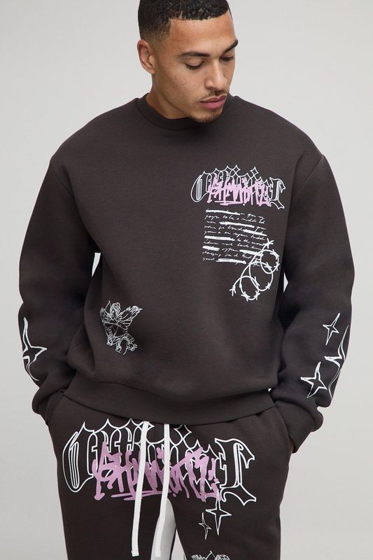 Oversized Boxy Graffiti Sweatshirt & Regular Gusset Jogger Tracksuit