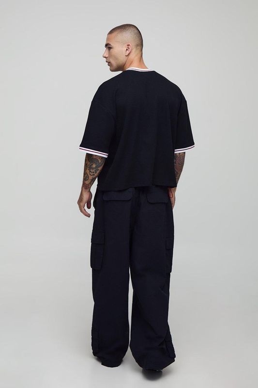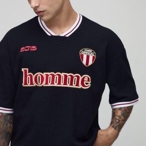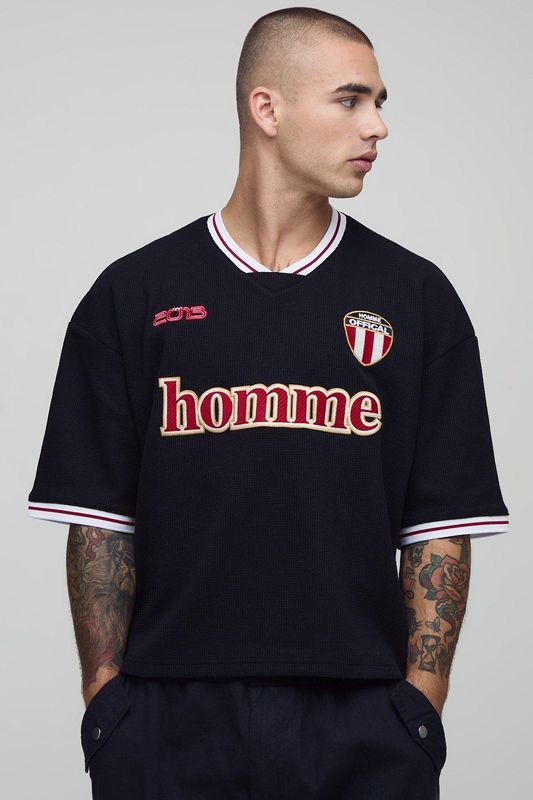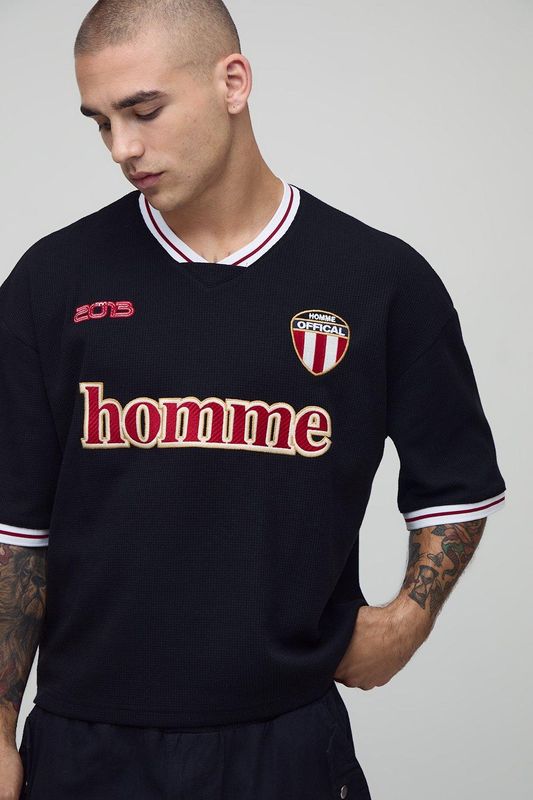 Oversized Boxy Homme Waffle Embroidered Sports Top