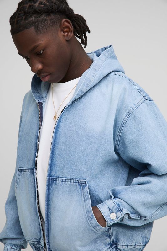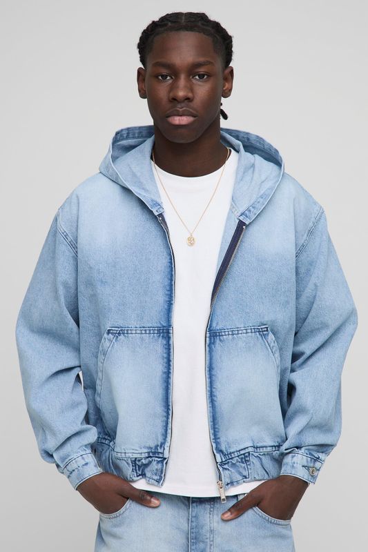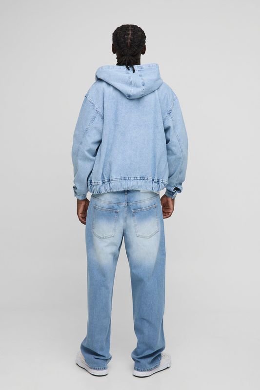 Oversized Boxy Light Blue Washed Denim Hoodie