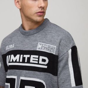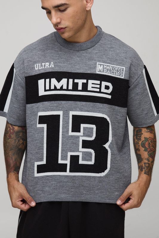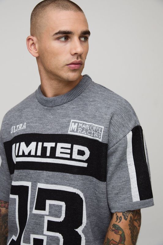 Oversized Boxy Limited Moto Jacquard Knitted T-Shirt