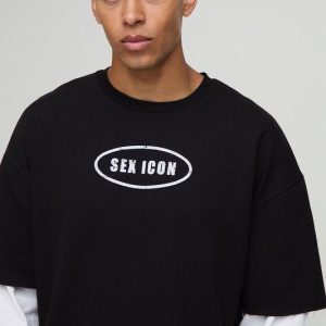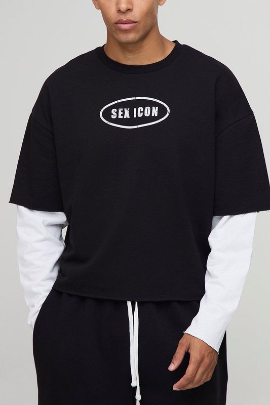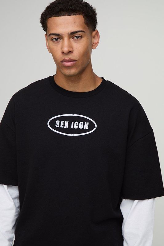 Oversized Boxy Loopback Faux Layer Sex Icon T-Shirt