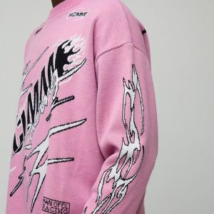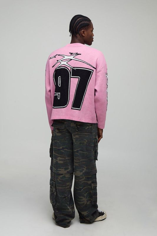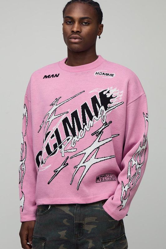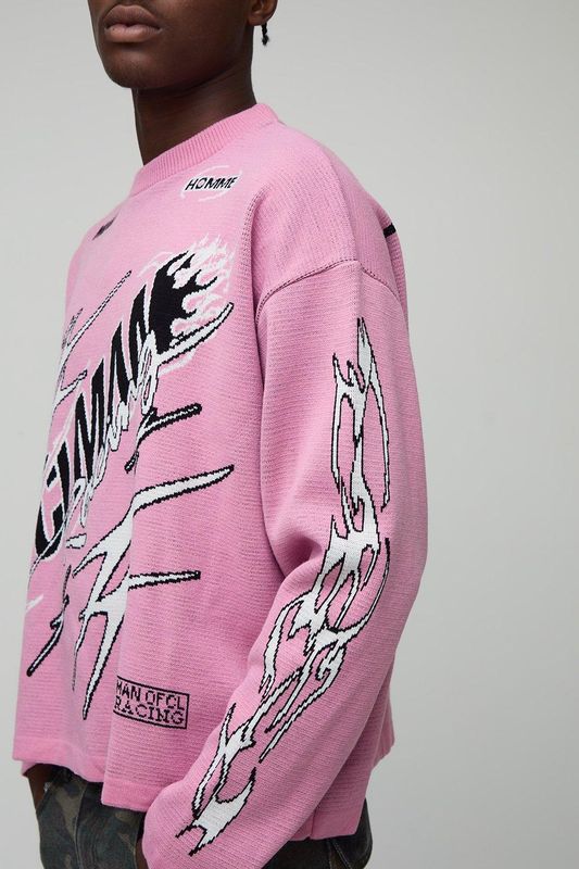 Oversized Boxy Moto Jacquard Graphic Knitted Jumper
