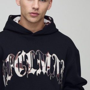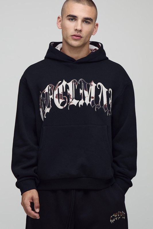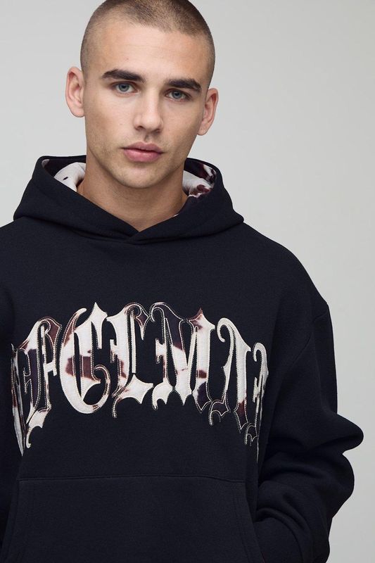 Oversized Boxy Ofcl Cow Print Applique Hoodie