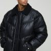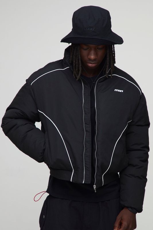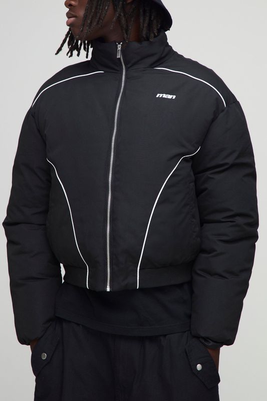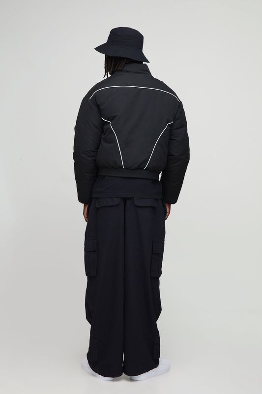 Oversized Boxy Piping Panel Funnel Neck Puffer Jacket