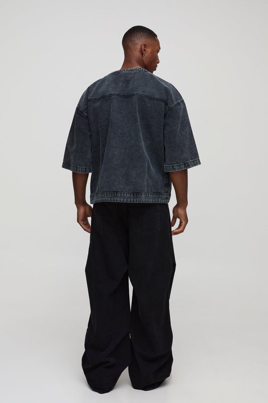 Oversized Boxy V Neck Denim Hockey T-Shirt