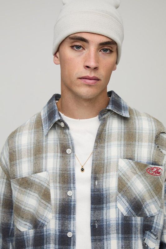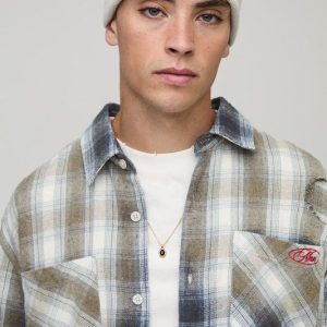 Oversized Boxy Washed Distressed Man Embroidered Shirt