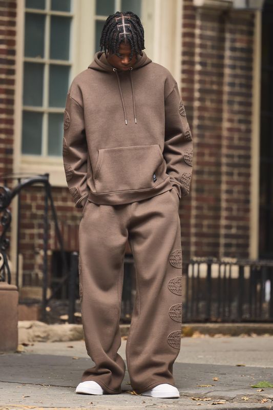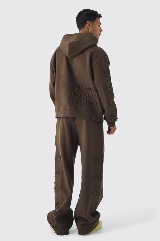 Oversized Boxy Worldwide Debossed Wide Leg Tracksuit