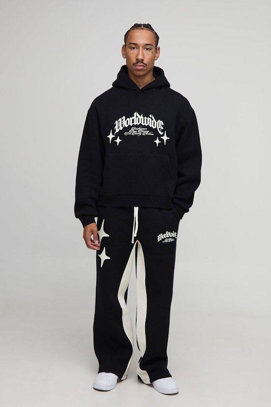 Oversized Boxy Worldwide Hooded Flare Gusset Tracksuit