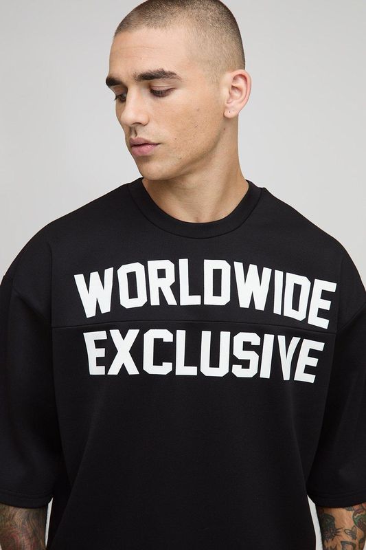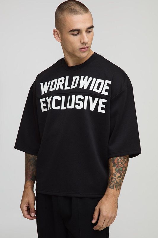 Oversized Boxy Worldwide Panelled Printed Scuba T-Shirt