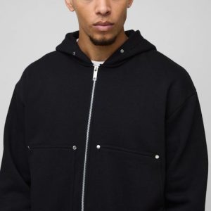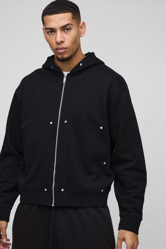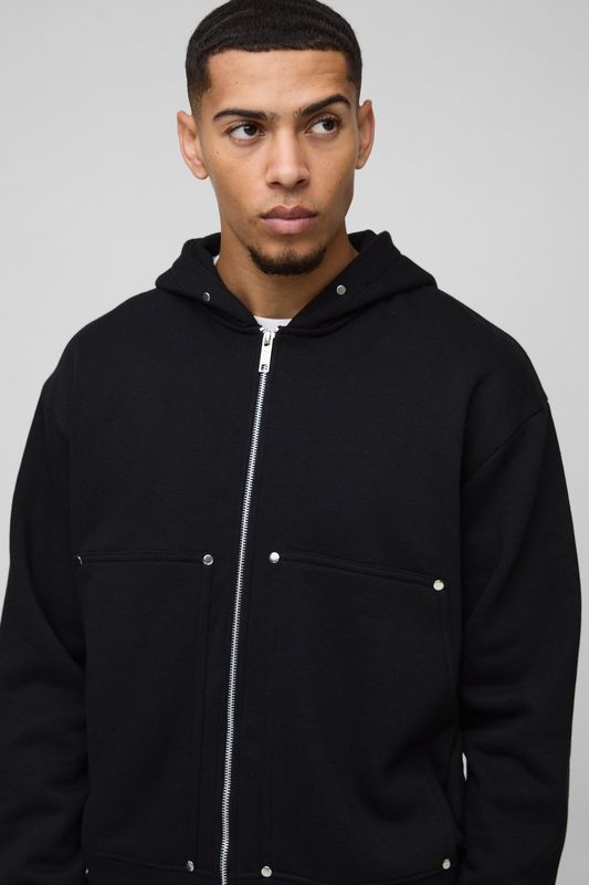 Oversized Boxy Zip Through Carpenter Hoodie