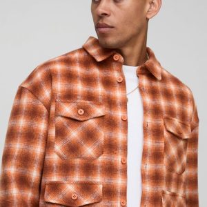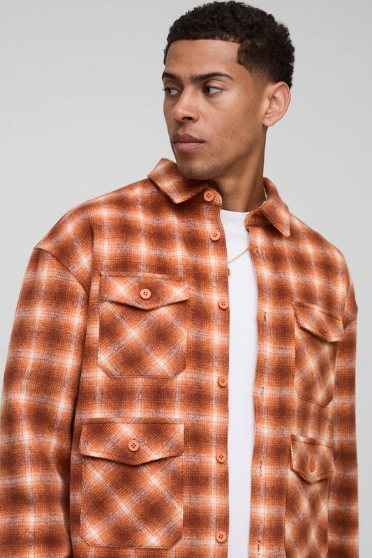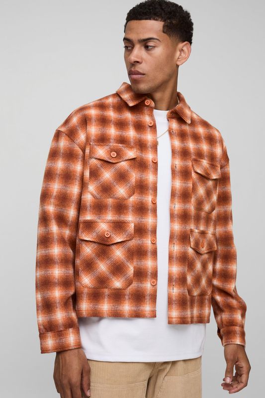 Oversized Cargo Heavyweight Flannel Shirt Jacket