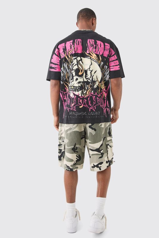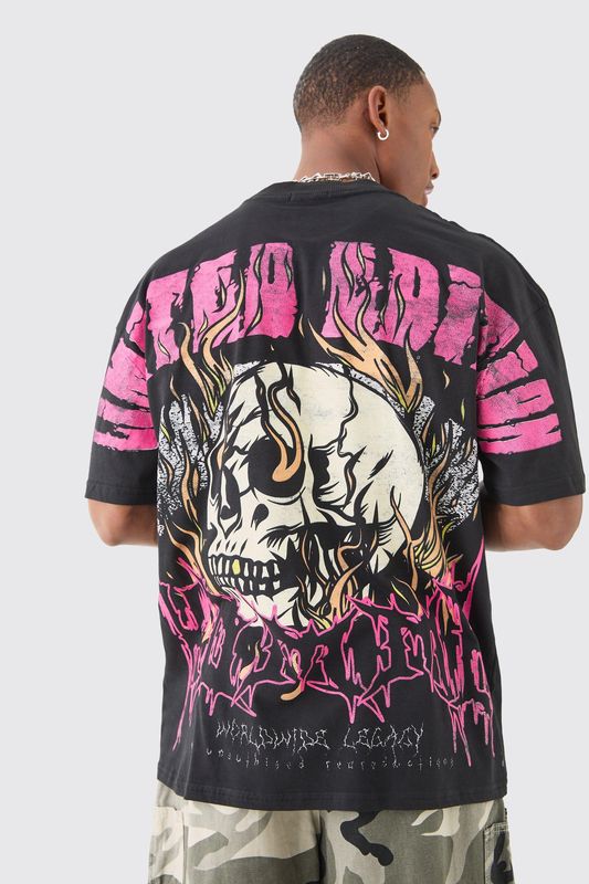 Oversized Extended Neck Over The Seam Gothic Back Print T-shirt