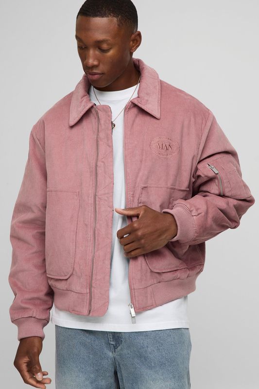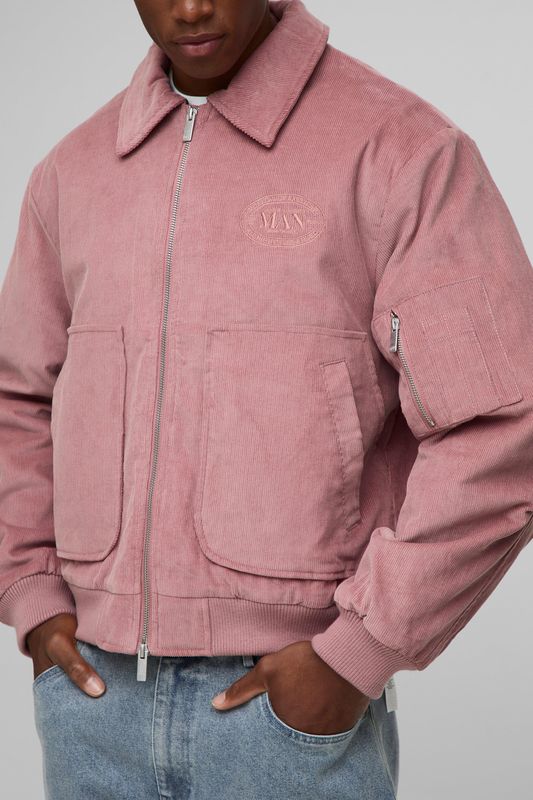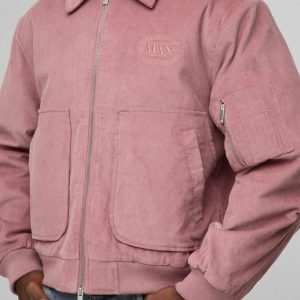 Oversized Fit Cord Collared Contrast Lining Bomber Jacket