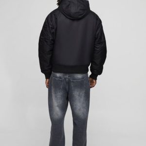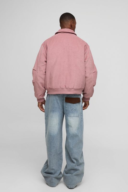 Oversized Fit Cord Collared Contrast Lining Bomber Jacket